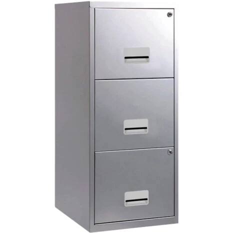 Pierre Henry Maxi Steel Filing Cabinet with 3 Lockable Drawers 400 x 400 x 930 mm Silver