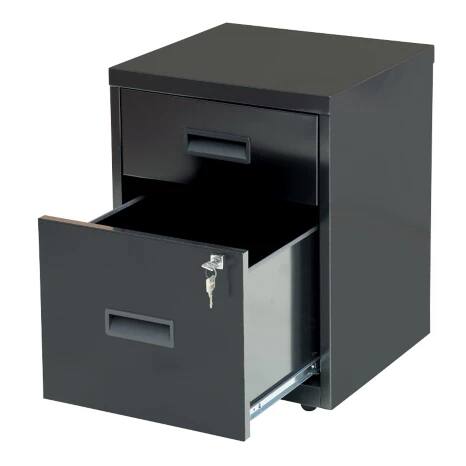 You get ample storage space with 2 drawers to put all of the documents you could ever need. The drawers can be locked if you need to store away confidential information and you don’t other people to see them. The drawer cabinet is strong and robust as its made out of metal. Black in colour to add some style into your office.